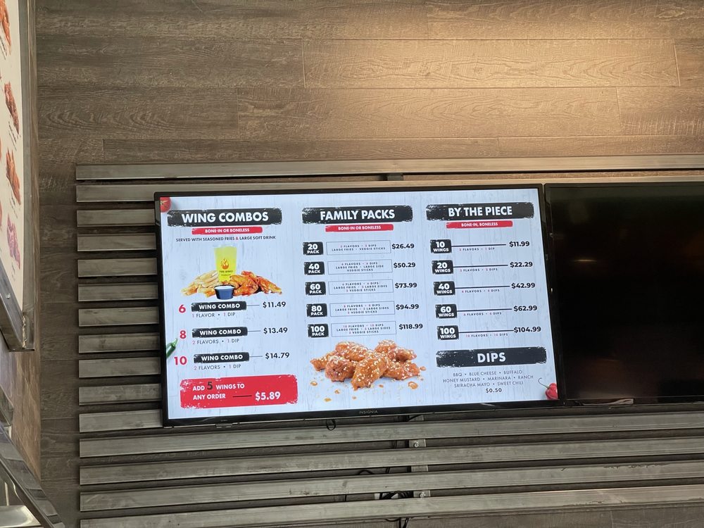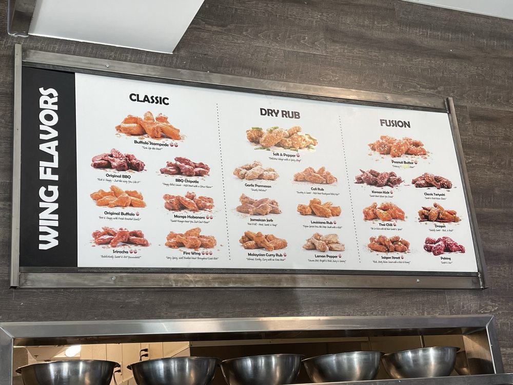 - Flavors: Choose from up to 10 wing flavors and multiple dips.